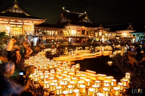 灯篭流しは18時半頃から始まります。1個500円で販売しています。