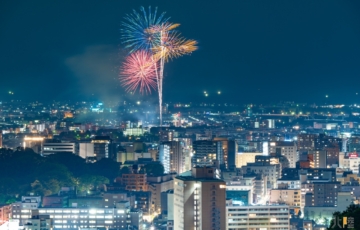 金沢中心部で上がるこの花火、市内各所の開けた場所から観賞できたでしょう。