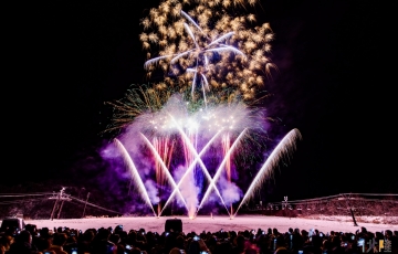 南砺市スキー場 IOX-AROSA カウントダウン花火2020の様子