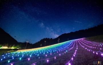 7月5日(土)より、白山一里野温泉スキー場にて毎年恒例のイルミネーションイベント「灯りでつなぐ白山」が今年も始まりました。 ペットボタルを使った大規模なイルミネーションで、7色の巨大な虹をスキー場に描きます。入場は無料で…