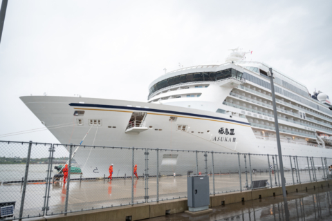 前日の予行演習はひみまつりの会場で見ましたが、本番は混雑を避けて海王丸パークへ