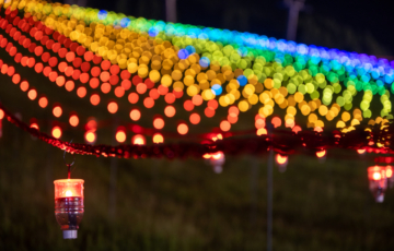 スカイランタンといえば単色のものが多かったかと思いますが、カラフルなランタンは見ごたえがあります。