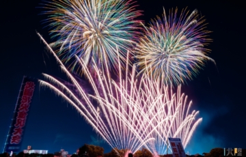 続いて花火の打ち上げ。打ち上げ場所は神通川。カウントダウン花火程度の規模を想定していたのですが、思っていたより大きめの花火が上がりました。せっかくならトラムと一緒に撮影したかったので道路で待機していましたが、花火は5分弱で終了。トラムと撮影することは叶わず。